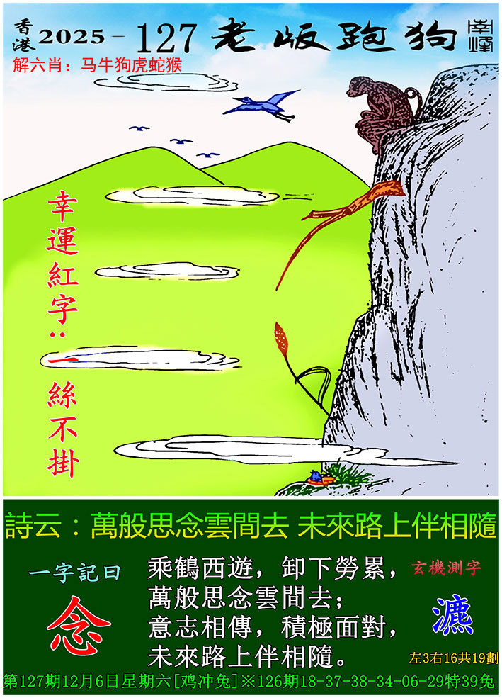 127期:一字記之曰:【念】詩雲:萬般思念雲間去,未來路上伴相隨,乘鶴西遊,卸下勞累,萬般思念雲間去;